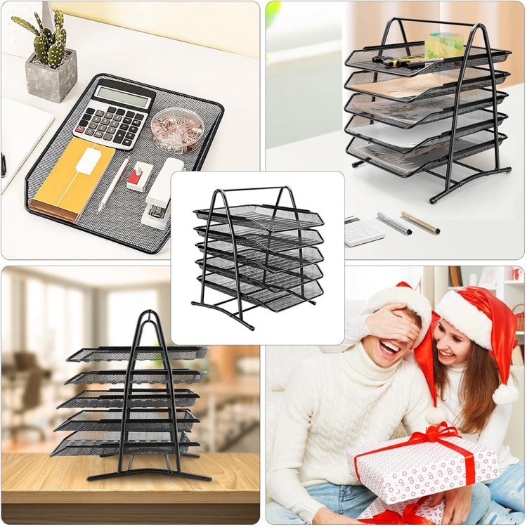 Полица метална мрежа 1/5 со цврста конструкција и модерен дизајн, совршена за организирање документи и канцелариски материјали.