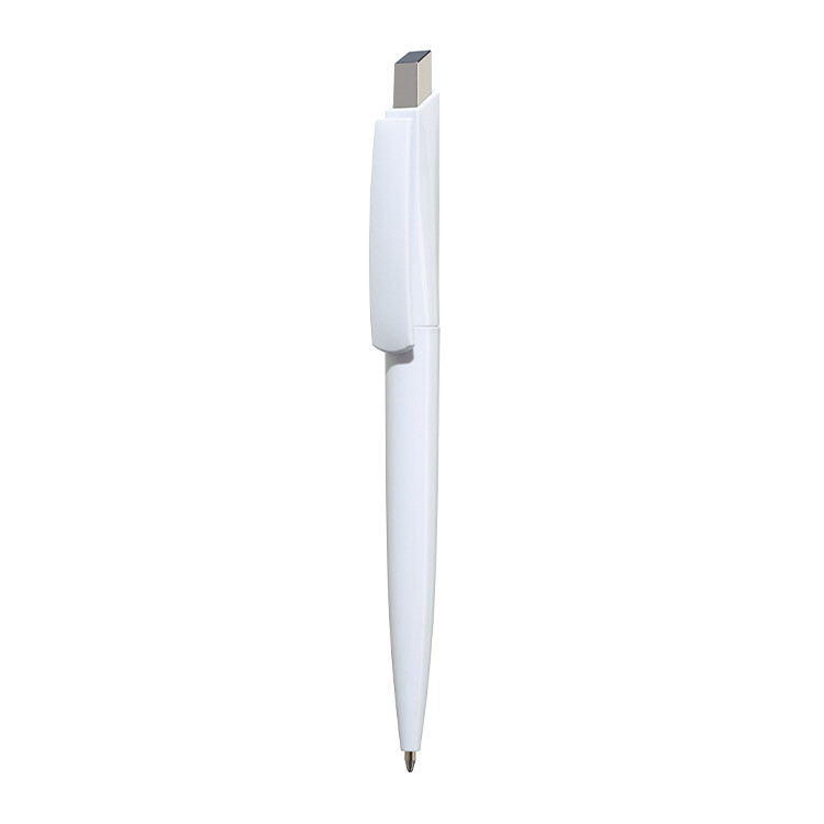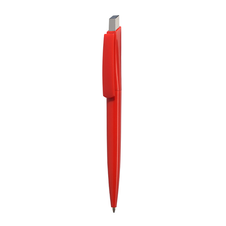 Пластично хемиско пенкало со клипса во боја и сребрен дел за притискање – Идеален промотивен производ за вашиот бренд